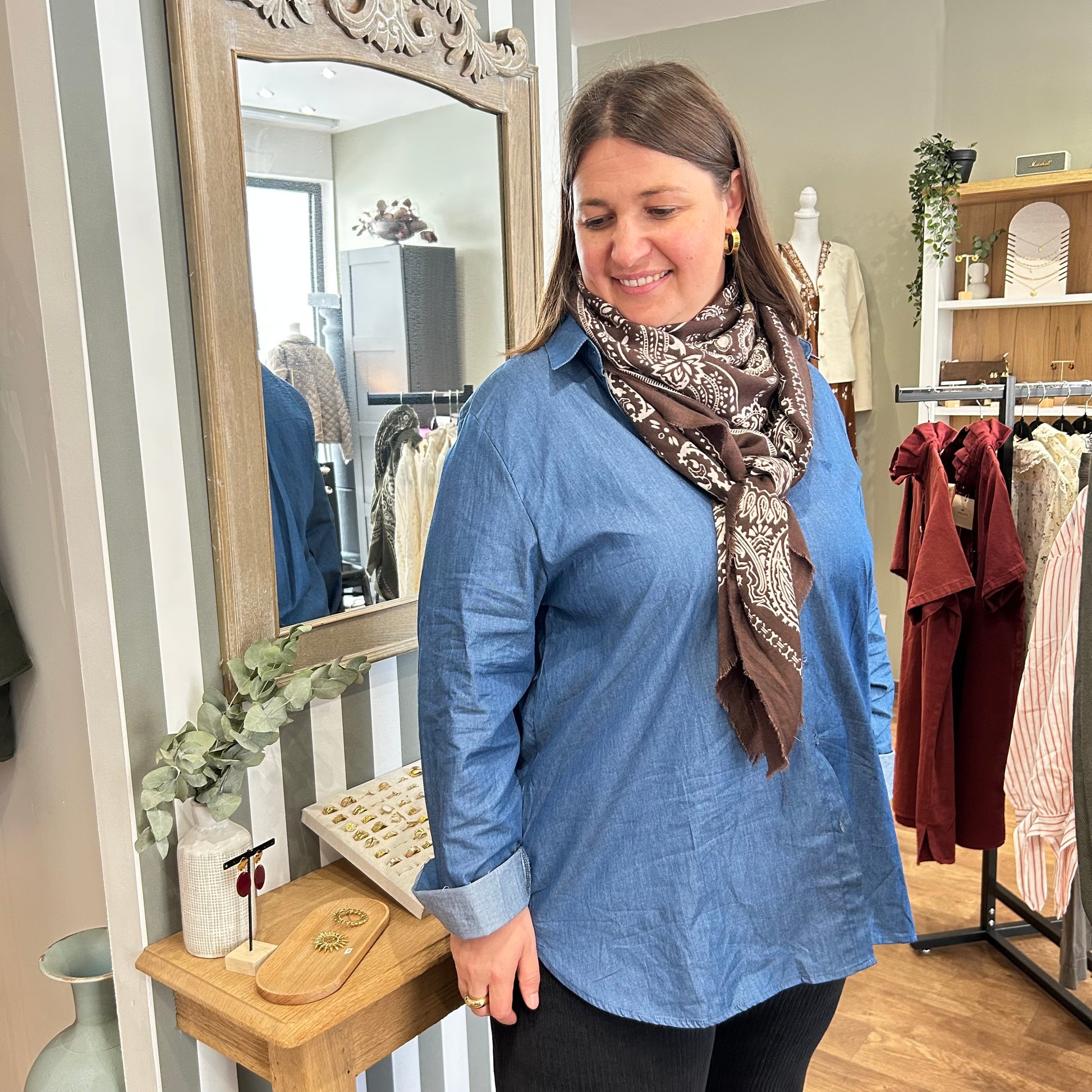 La Chemise en jean est un incontournable féminin, alliant confort et style grâce à son imprimé floral coloré et à sa coupe moderne. Fluide et agréable à porter, elle se distingue par son allure romantique et tendance, idéale pour toutes les saisons.